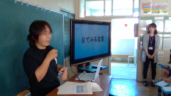 はじめに、音声がないアニメ動画を視聴して、耳が聞こえない方の状態を体験しました。また、「耳が聞こえない方が病院を受診したときに、自分の症状をどう伝えるか。」「スーパーで買い物をするときに、支払い方法を聞かれたら、どう伝えるか。」など、実際の生活場面を考えました。最後に、手話での挨拶を教えていただきました。今後は、耳が聞こえない方も過ごしやすくするために、自分たちにもできることを考えていきたいと思います。