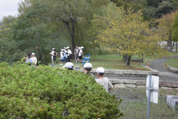 自分の目で佐鳴湖の自然を感じようと、学年全員で歩いて行きました。