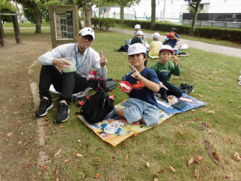 美薗中央公園では、お弁当を食べ、元気よく遊びました。
