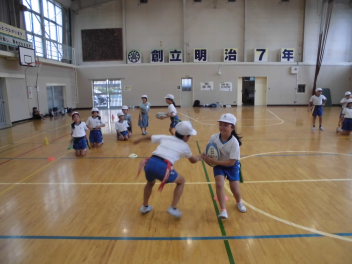 20日はタグラグビーの試合をしました。複雑なルールもありましたが、小池さんが優しく教えてくださいました。子供たちは楽しそうに試合に臨んでいました。