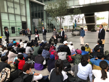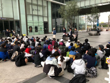 1日目の活動を紹介します。まずは浜松駅での出発式の様子です。二日間お世話になる添乗員さん、カメラマンさんの紹介がありました。