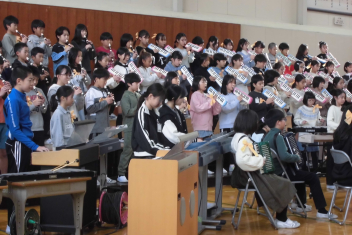 • かがやき発表会に向けて、5年生は合唱と合奏の練習を頑張っています。