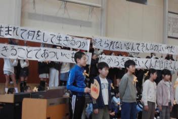 子供たちは、「自分の好きなことを貫いて」「好きなところで、好きなことを、好きなだけ。人生は一度きり」という言葉から勇気をもらい、「人生100年時代」「やらない後悔より一歩踏み出す勇気を」という言葉から、いくつになってもいろいろなことに挑戦しようという思いをもちました。