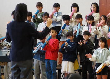 合奏では鍵盤ハーモニカやリコーダー、木琴などを使って「ミッキーマウスマーチ」を演奏しました。
