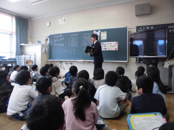 消防局の竹内さんは、「今日話したことをみんなが理解して、火災などの事故が減ることが一番うれしい。」と話をしてくれました。竹内さんの「家にある住宅用火災警報器の点検をぜひしてほしい。」という話を聞いて、子供たちは「家に帰ったら家の人に話をしてみよう。」と意気込んでいました。