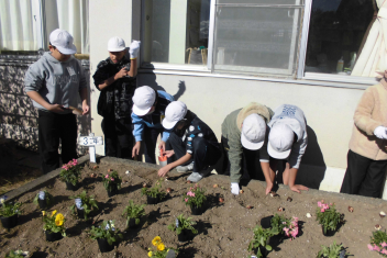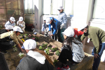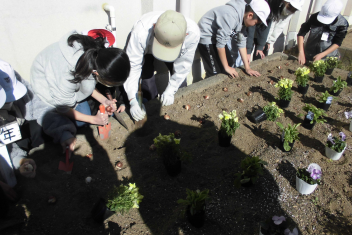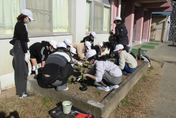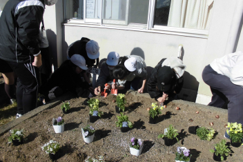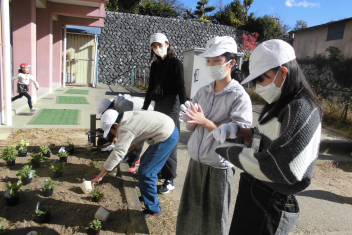 コミスクのみなさんと、花壇の花の植え替えをしました。