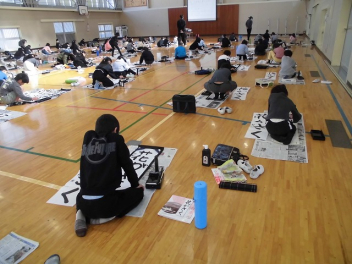 9日(火)の1、2時間目に、3年生が書き初めの練習をしました。