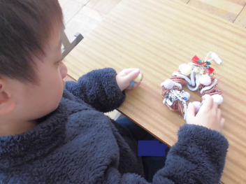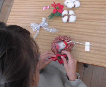 • 街にイルミネーションがきらめく季節になり、1年生もあさがおリースの飾り付けをしました。