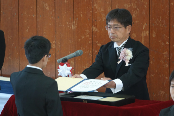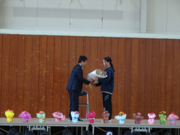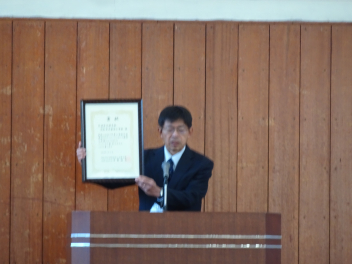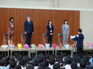 入場後、壇上に上がっていただき、校長先生から橋本さんの紹介がありました。