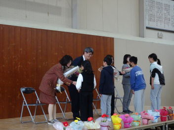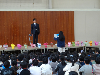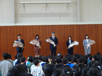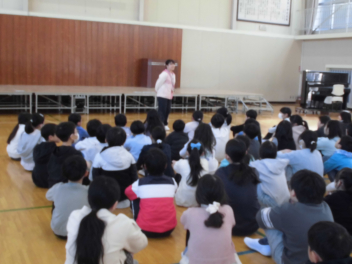 最後に、6年生の児童によるお礼の言葉と花束贈呈が行われ、橋本さんからのお話で講演会が終了しました。