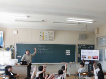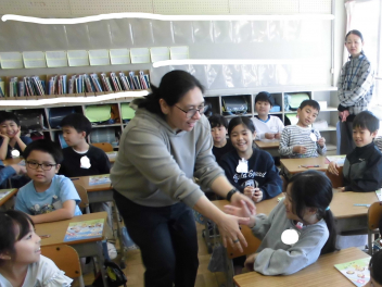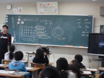 次に、11名の代表児童が前に出て、橋本さんに「緊張のコントロールの仕方は?」「勝負飯は何ですか?」といった質問をして、それに答えていただきました。