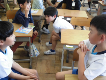 続いて、2名の教員の司会との対談形式で、小学生の頃の様子やオリンピックまでの道のりについて話していただきました。