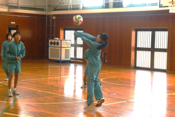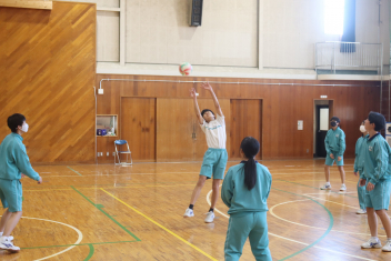 今日は試合をしていました。誰かが一生懸命上げたボールをつないで、スパイクにつながったり、得点を取った時には、大きな歓声が上がっていました。