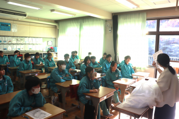 また、授業の後は、中学校の生徒会が先導して、部活動を見て回りました。