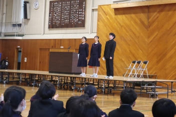 終業式では、各学年の代表の生徒が「2学期を振り返って」の反省と、新年にむけての抱負を語ってくれました。