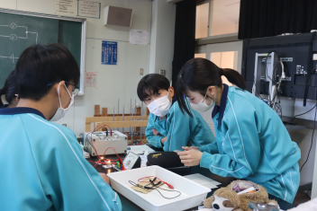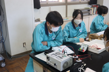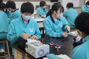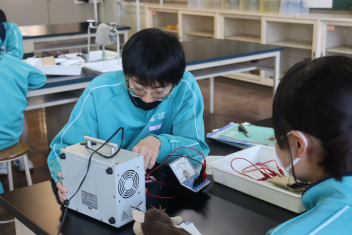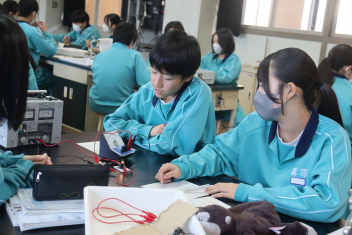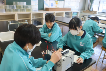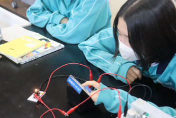 • 2年生は、理科で回路に流れる電流や、加わる電圧について実験を行っています。