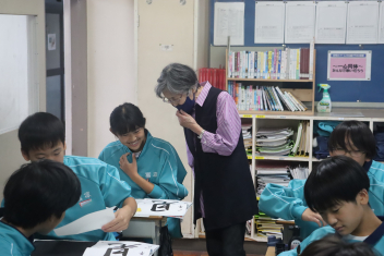 各学年の国語の授業では、富塚地区の書道の先生を招いて、書写の指導をしていただきました。