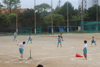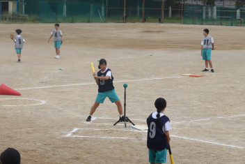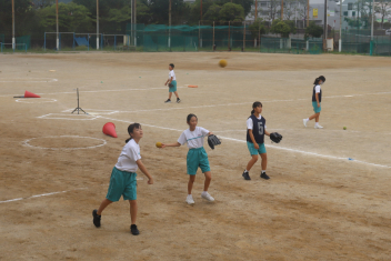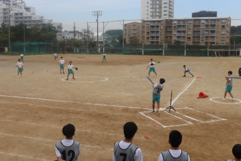 • 1年生は体育でソフトボールの授業をしています。