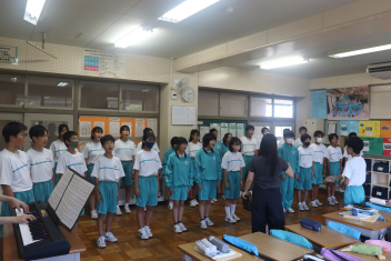 同じ縦割り集団の1・2・3年生が、互いの学級の合唱を発表します。