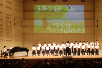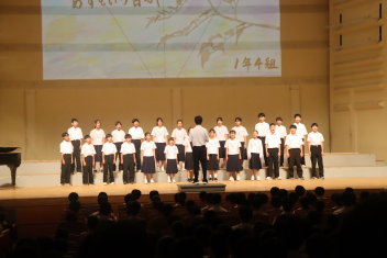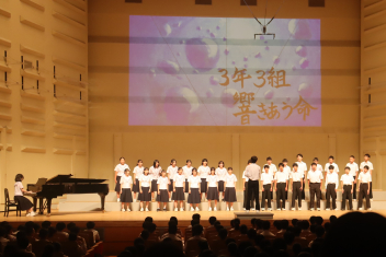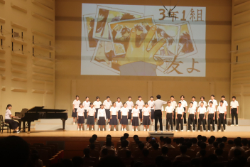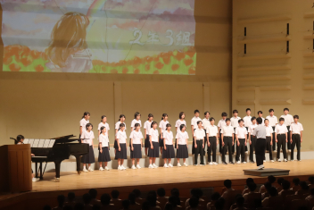 各学級が練習してきた合唱や、吹奏楽部、英語スピーチの発表が行われました。