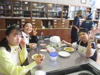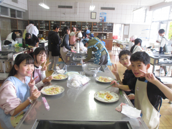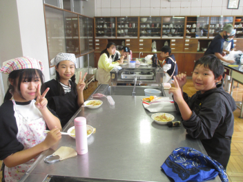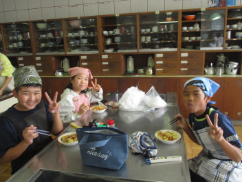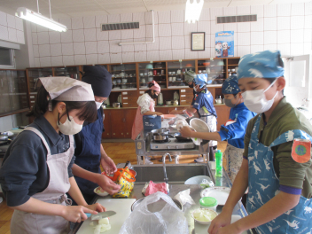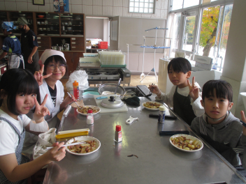 •  本日、6年生が家庭科でジャーマンポテトや目玉焼きを作りました。久々の調理実習で、子供たちもとても楽しく明るい雰囲気の中で活動できました。用具をてきぱきと準備する子、野菜を上手に切る子、洗い物が上手な子、、自分の得意分野でそれぞれが活躍できました。