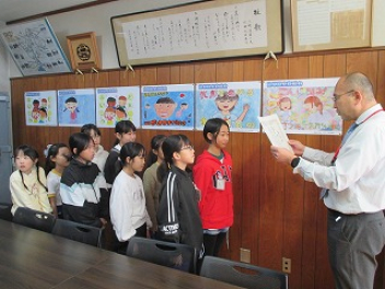 富塚西小の1,2,4,5年生の子供が、先日行われたポートボールの大会で、よい成績を収めたことを校長先生に報告しました。