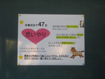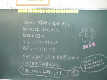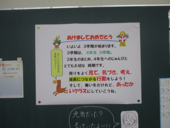 さあ、短いけれど中身の濃い3学期。 子供たちがこのメッセージのように、笑顔で過ごせる日々になりますように。