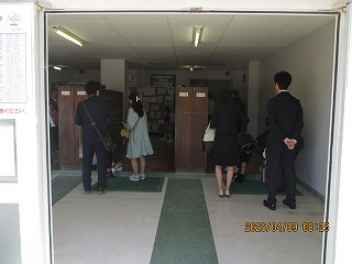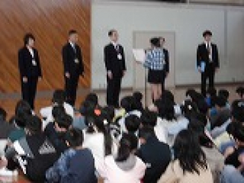 まずは新任式が行われました。3月に多くの先生方とお別れしましたが、5名の先生方が富塚西小学校に来てくれました。代表児童がお迎えの言葉を伝えて、新任職員代表の挨拶がありました。これから新しい先生方との勉強が楽しみです。