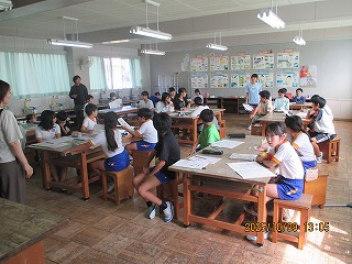大学の学生さんが、インターンシップとして学校に来てくれました。今日の2時間目は、教室の後ろの方から学級の様子を見守ってくれていました。