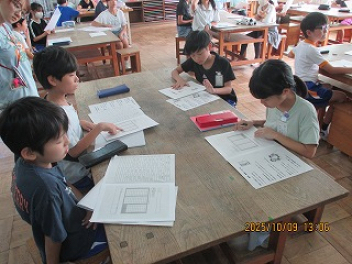 椎ノ木谷の歴史や生き物、観察の注意点などについてのお話を聞きました。子供たちはメモを取りながら興味深そうに聞いていました。