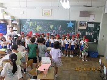朝会では、6年生代表による朝の挨拶、校長先生のお話、自由研究の表彰がありました。