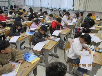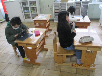 漢字ドリルに黙々と取り組んでいたり、国語の授業でグループに分かれ話し合ったりしている様子が見られました。
