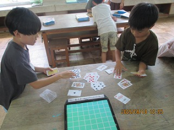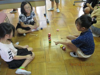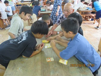 2学期初めてとなる「遊びイベント」が昼休み行われました。地域の方々にお越しいただき、カードゲームやコマ、将棋にだるま落としなど、たくさんの遊びが3つの教室で行われました。また、読み聞かせや折紙などもありました。子供たちはそれぞれの遊びを楽しんでいました。