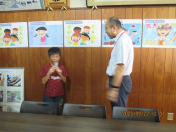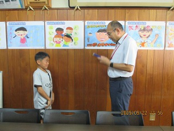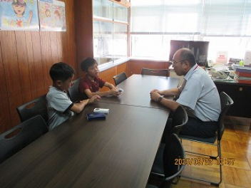 富塚西小の4年生の子供が、サッカーの練習に励み、先日行われた大会で、よい成績を収めたことを、9月22日(月)に校長先生に報告しました。