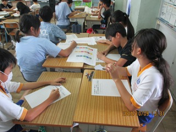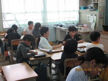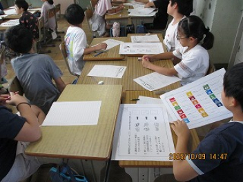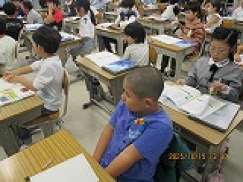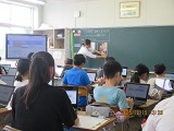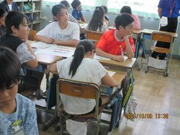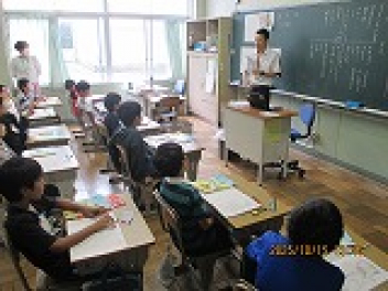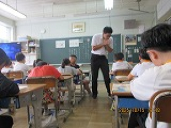大学の学生さんが、インターンシップとして学校に来てくれました。今日の2時間目は、教室の後ろの方から学級の様子を見守ってくれていました。