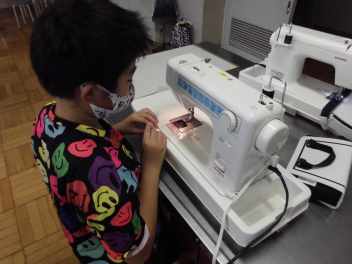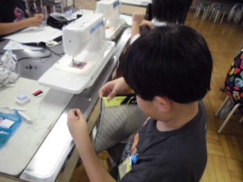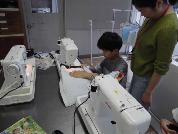 久しぶりのミシンに苦戦している子供たちもいますが、学習ボランティアの方々に手伝ってもらいながら、完成に向けて取り組んでいます 。