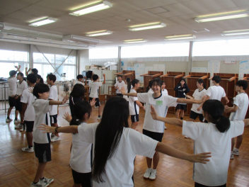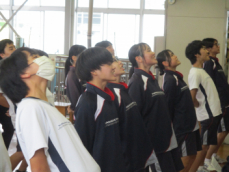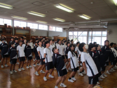 • 体育大会の応援合戦に向けて、縦割りでの応援練習が始まりました。