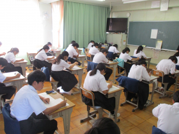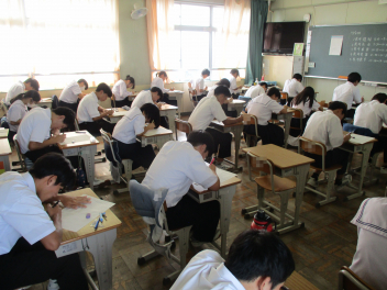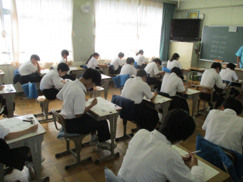 「始め」の合図とともに、教室からはカリカリと鉛筆を走らせる音だけが聞こえ、生徒たちは最後まで集中して問題を解いていました。