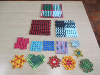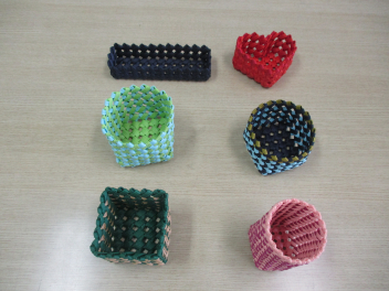 コースター、ペンケース、小物入れなどの新作が次々と完成しました。形だけではなく、色の組み合わせなども工夫しながら、手際よく、丁寧に作業を進めています。