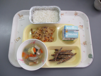 米飯  牛乳  きびなごのごまだれかけ  切干し大根の含め煮  さつま汁