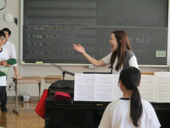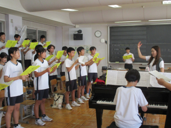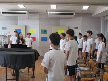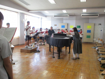 • 合唱コンクールに向けて、浜松市アクトシティ音楽院の山本愛子先生を講師にお迎えし、3年生が1時間ずつ合唱の指導を受けました。