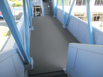 • 3連休の間に、北校舎と南校舎を結ぶ通路(本校ではX階段と呼んでいます)に滑り止めがついたマットを敷く工事を行いました。