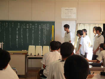 放課後、生徒協議会が行われました。執行部、各専門委員長から今月の目標や重点活動についての説明があり、それぞれ承認されました。3年生の執行部、専門委員長は、これが最後の生徒協議会への参加となり、2年生の新役員への引継ぎも行いました。