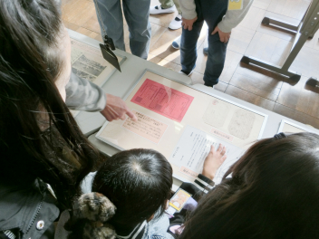 今年は太平洋戦争の資料です。昼休みに2年生が、5・6時間目に3年生が見学しました。