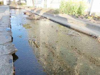 • 寒い日になりました。ビオトープに薄く氷が張っていました。