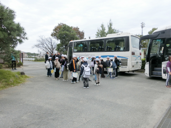 目的地までの道路が狭いため、小型バス3台で出発しました。