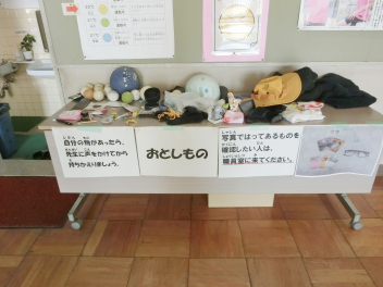 保護者の方が見える機会に合わせて、落とし物を掲示しています。