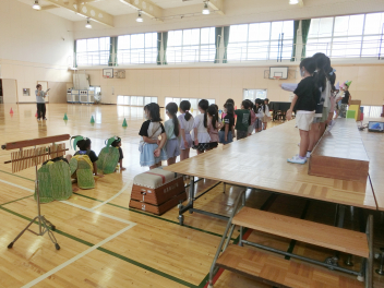 • 体育館には「とよにし発表会」の準備が整っています。