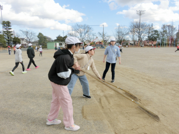 • 昼休みに運動場にいた児童が「運動場がでこぼこしていて気になる。」と話していました。
