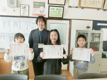 • 今日は3名の児童を表彰しました。みんないい表情で受け取ってくれました。